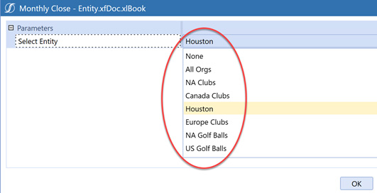 When you execute your book and multiple pop-up windows appear, check your cube views to ensure all cube views use the same prompts. For example, you may have several cube views in the book using your workflow entity as the prompt, but other cube view(s) are using a general entity prompt instead. In this case, you will see two entity prompts: