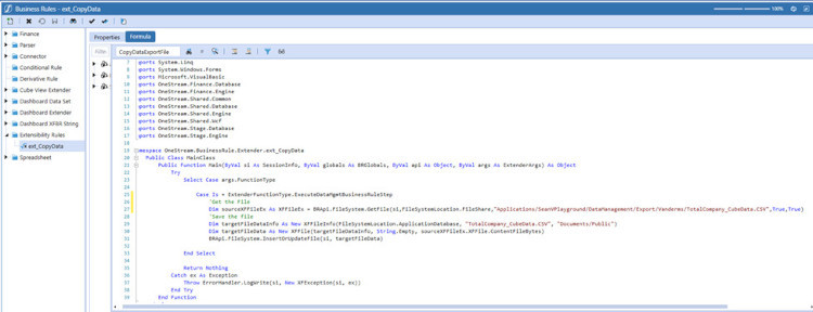 5. Use the following code in your Extensibility rule. For example, purposes I have hard coded the file name.