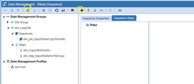 7. The 2 steps, export data and execute business rule can be chained together into a Data Management Sequence. Create the new sequence and add the two Data Management steps created earlier.